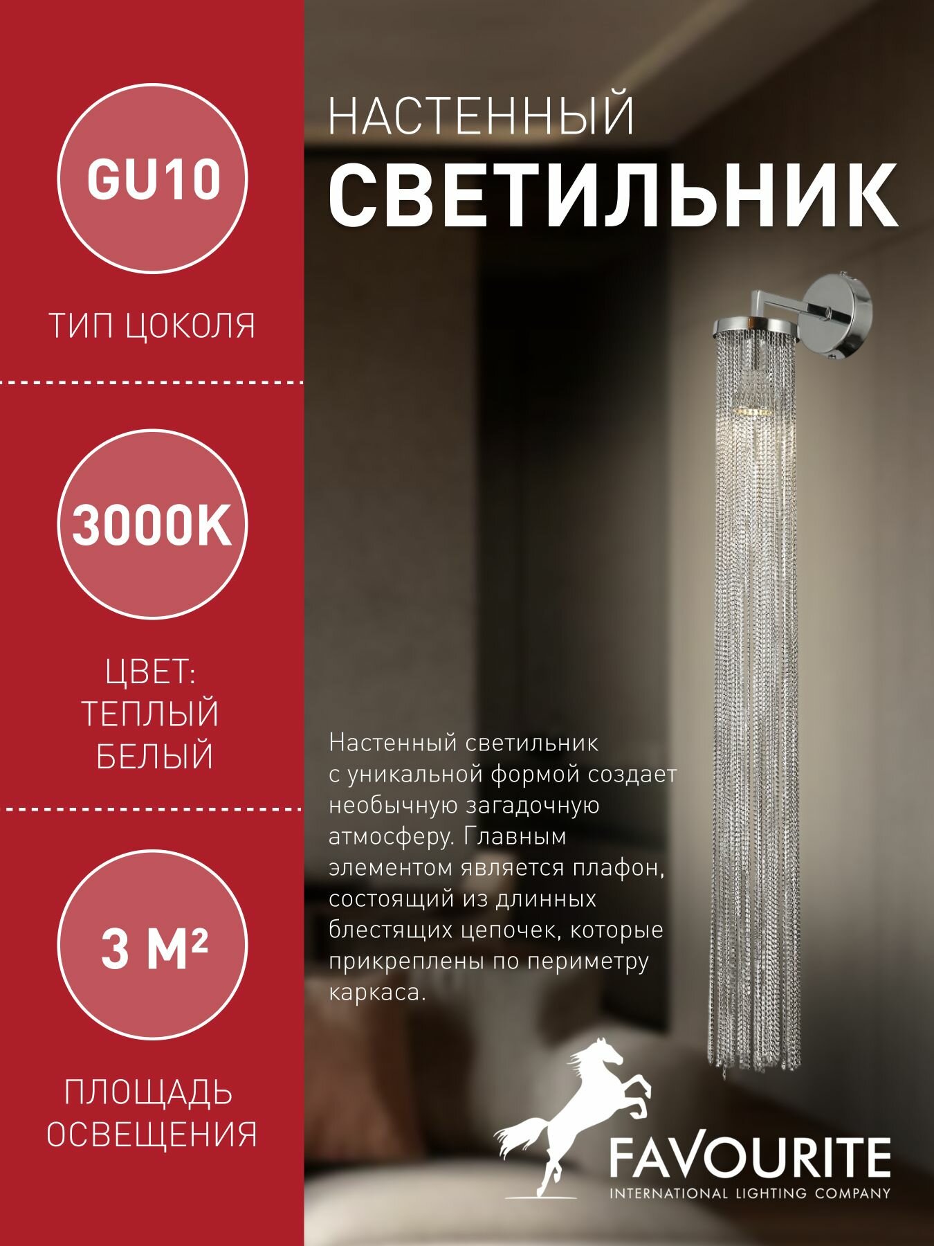Настенный светильник FAVOURITE 2848-1W, 3 кв м, GU10 галогенная/светодиодная 40 Вт, 3000 К теплый белый, IP20, металл: сравнение цен, характеристики, фото, актуальное наличие и цены.