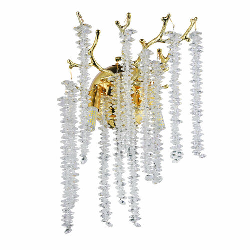 | Дополнительная информация | светильник предназначен для использования со скрытой проводкой Основание настенного бра выполнено по технологии художественного литья из сплава алюминия с цинком и гальванизировано в цвет золота. Настенное бра декорировано гроздьями из прозрачного хрусталя. |
