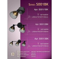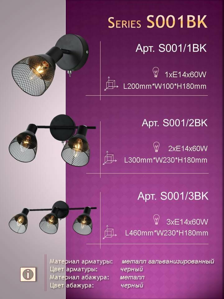 Настенный светильник поворотный S001/2 BK, цвет - черный, с тумблером