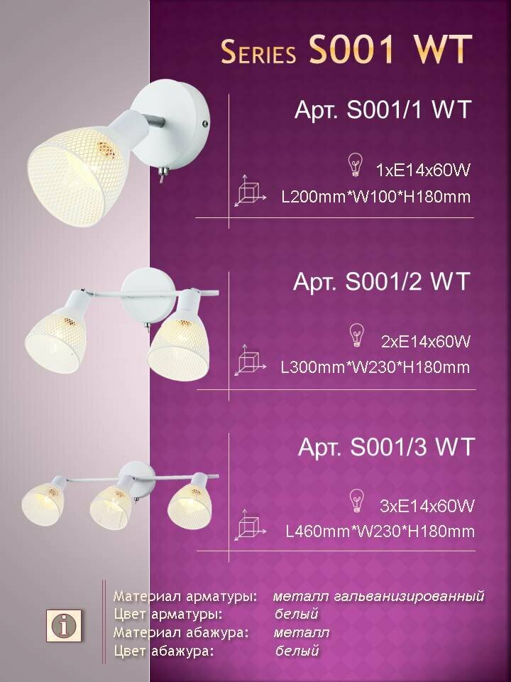 Настенный светильник поворотный S001/1 WT, цвет — белый, 1хЕ14х60Вт: сравнение цен, характеристики, фото, актуальное наличие и цены.