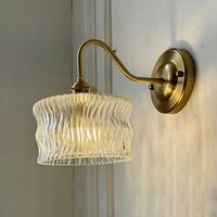 Introducing the Yujia Glass Wall Lamp, a sophisticated lighting fixture that combines elegance with functionality. This wall lamp features a brass curved tube and brass lamp head, which not only provides a warm and inviting glow but also adds a touch of classic charm to any room. The lamp is equipped with a copper base and a glass shade, ensuring both durability and a refined aesthetic. Perfect for adding a touch of sophistication to your living space, this wall lamp is a blend of traditional craftsmanship and modern design.