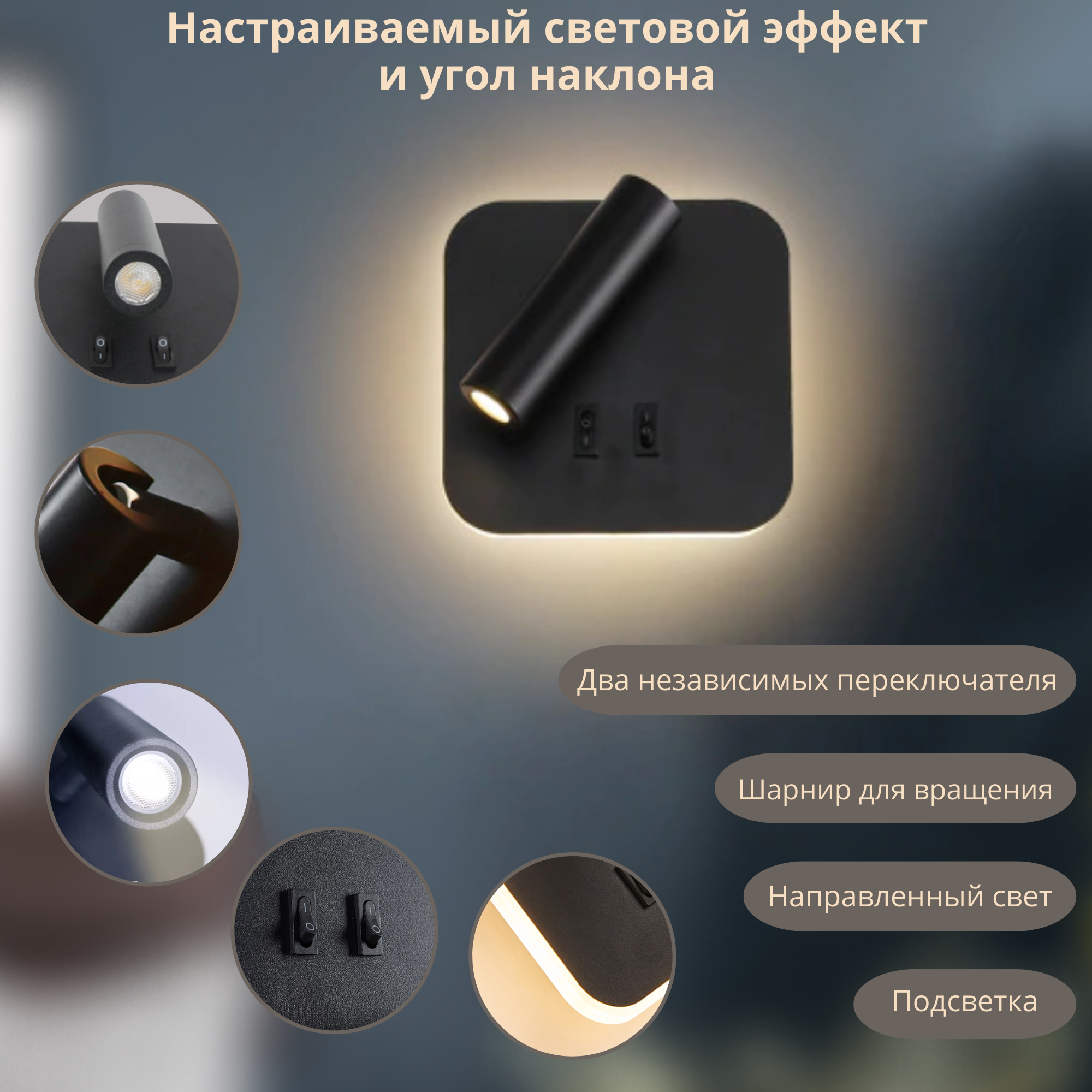 Настенный квадратный светильник с LED подсветкой - это стильное и функциональное решение для освещения в спальне, в прихожей, коридоре, на кухне, в детской, гостиной, зале, кабинете, офисе, для прикроватной зоны. Он гармонично впишется в любой интерьер. Светильник оснащен поворотными плафонами, которые позволяют регулировать направление света в зависимости от потребностей пользователя. Это обеспечивает равномерное освещение и комфорт для глаз. Можно использовать несколько вариантов свечения: только плафон, только подсветка корпуса, подсветка корпуса и плафон одновременно. Светильник можно использовать в качестве дополнительного освещения, а также в качестве ночника и подсветки рабочей зоны для школьника, рукоделия, чтения и при занятии хобби. Подходит настенная лампа для любого типа интерьера. Такие настенные светильники подходят под скрытую проводку и имеют на корпусе два независимых друг от друга выключателя. Управление светильником осуществляется с помощью механического выключателя на корпусе, что обеспечивает простоту и удобство использования. Особенностью светильника является наличие LED подсветки, которая создает теплый белый свет. Это создает уютную атмосферу и помогает создать комфортную обстановку для чтения или работы.