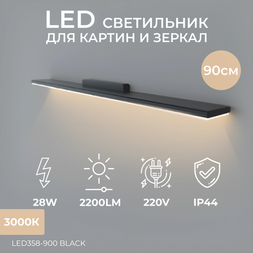 Настенный влагостойкий светильник, бра, подсветка для картин, подсветка для зеркала LED358-900 Black: сравнение цен, характеристики, фото, актуальное наличие и цены.