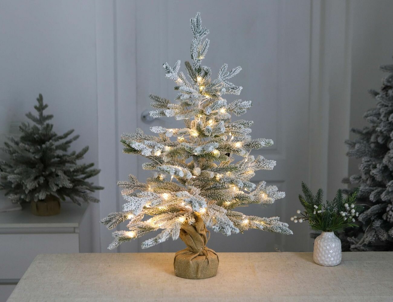 Купить Настольная елка с гирляндой сноу шарм заснеженная, 70 см, 100 теплых белых LED ламп, литая 100%, Winter Deco 1000915 с доставкой по всей России.