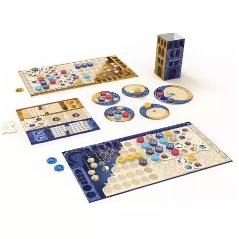 | Подробная комплектация | 132 плитки, 4 планшета игрока, поле подсчета очков, жетон первого игрока, 9 дисков складов, мешочек, башня, фишка раунда, 4 фишки подсчета очков, 4 жетона «80» очков, правила игры |