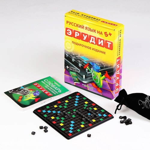 Классическая лингвистическая игра на составление слов по типу кроссворда. Комплектация: - игровое поле - игровые фишки - 131 шт. - словарь имен существительных - фирменный мешочек
