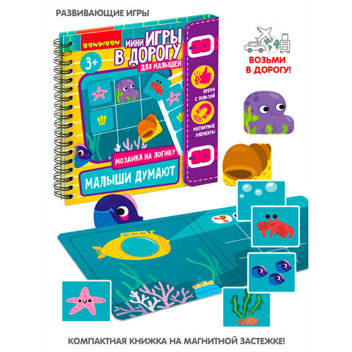 В комплекте - магнитное поле, 9 элементов мозаики, 18 заданий. Весь набор компактно упакован в мини-книгу с магнитной застежкой. 3+