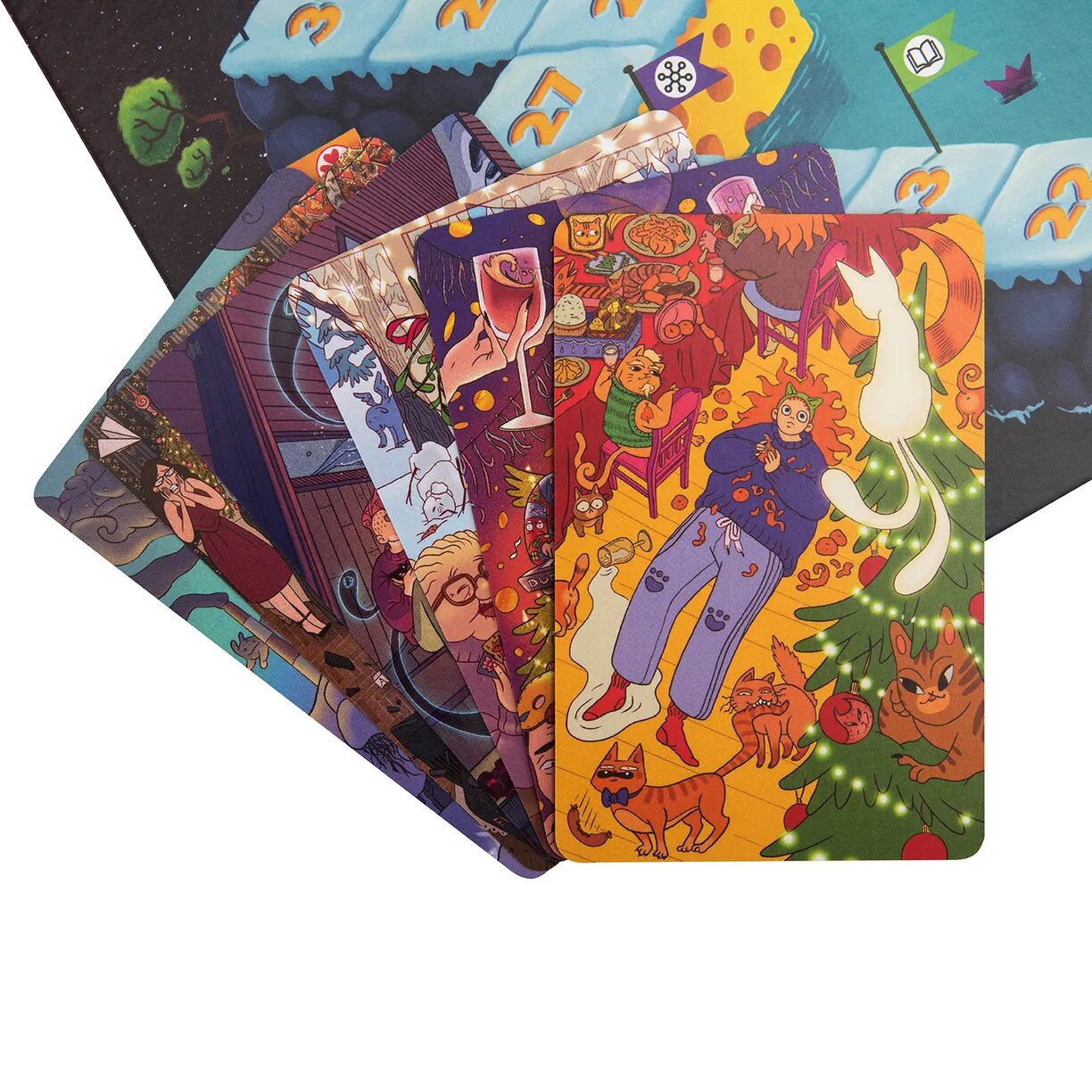 Мы добавили зимнее оформление коробки и 6 эксклюзивных карт, чтобы вам было приятно подарить игру друзьям.