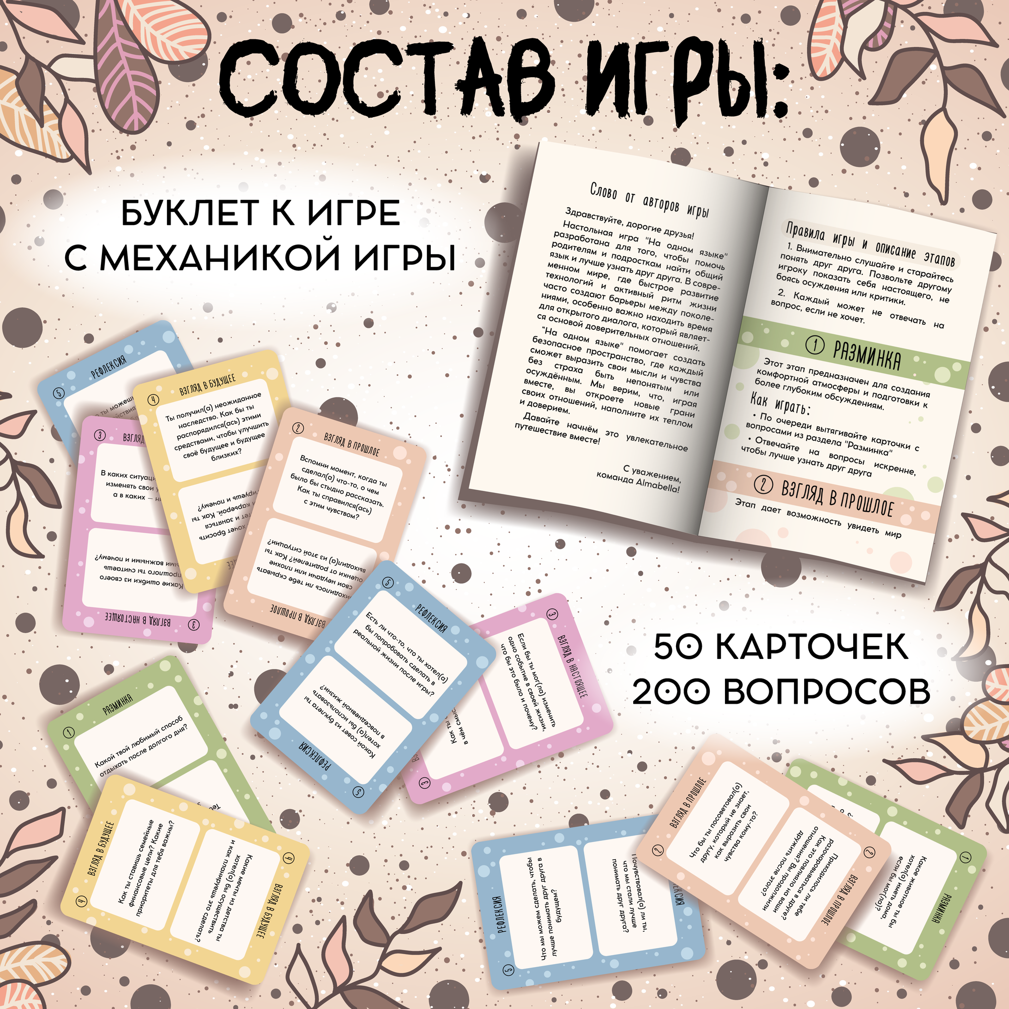 "На одном языке" — настольная игра, разработанная совместно с психологами для укрепления отношений между родителями/старшим поколением и подростками. Она помогает создать открытый и равноправный диалог, позволяя участникам лучше понять друг друга, обсудить важные темы и построить доверительные отношения.
