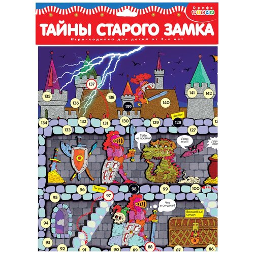 В центре игрового поля на сгибе вы увидите небольшое технологическое отверстие, это делается специально, чтобы поле не рвалось при складывании и лежало ровнее. Игра упакована в пакет с держателем, она занимает мало места, а потому её удобно хранить на игровой полке. Рекомендуем хранить кубик и фишки отдельно, чтобы поле было ровным.