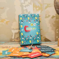 Все карты комплекта разделены на 4 группы. Каждая из них имеет своё название: имена, география, русские и иностранные скороговорки. Фразы во втором варианте транскрибированы и записаны русскими буквами. В роли таймера выступает деревянный волчок.