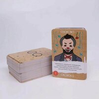 135 карт эмоций, 49 жетонов, 30 карт-фраз, 7 фишек-прищепок, 4 маски, песочные часы, буклет эмоций, 7 нумераторов.