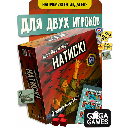 Натиск! – это увлекательная военная стратегия с простыми правилами и быстрыми партиями. Никаких сложностей, карт или кубиков – только мешочек с фишками ваших боевых подразделений, которые вам предстоит доставать и отправлять их покорять сразу пять театров военных действий. Но откуда лучше начать покорение? В Западной Европе, где доминирует противник, но не все еще потеряно, или же близь Тихого океана, где есть все шансы заполучить регион в свое владение? Исход Второй мировой войны в ваших руках – и всего за 20 минут!