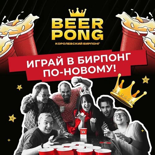 Королевский Бирпонг – это абсолютно сумасшедшее в своей весёлой необычности алкогольное развлечение для большой компании, желающей отлично провести время. Вам предстоит разделиться на две команды, а затем – стать гордыми обладателями неких супер-силы, с помощью которых вы будете стараться сделать все для победы вашей команды. Правила игры на первый взгляд просты – попасть небольшим шариком в стаканы с водой соперников, стоящие треугольником на их части стола, и так раунд за раундом, пока у той или иной команды не останется всего один стакан. Если вы попали - убираете стакан, а ваш соперник в этом раунде пьет. Но что, если вы будете пытаться закинуть шарик, стоя спиной к столу? Что, если ваш соперник выйдет для броска не один, а позовет на помощь своего "бро"? Что, если придется кидать сразу несколько шариков, да еще и обеими руками? Ну а под конец, когда у одной из команд на столе останется один финальный стакан, вас будет ждать битва Королей - уже по новым правилам, но даром что ли наш Бирпонг назван Королевским? Готовьтесь смеяться до упаду, проклинать вселенную за ваш глазомер, научиться прицельной стрельбе по стаканам с отскоком и тому, что партию в Бирпонг захочется повторять снова и снова!