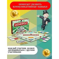 Настольная игра Классическая Монополия. Обновленная версия - это обновленный вариант любимой экономической стратегии для 2 - 6 игроков. Империя денег и власти заставляет делегировать и зарабатывать деньги в банк без ограничения границ, чтобы вы были миллионер. Рассчитываться можно деньгами, банковскими картами, карточками, терминалом в зависимости от того какую вы выберите игру. Учите своих детей управлять городами принимать решения, расчет холодное сердце, такие навыки нужны в бизнесе. Учитесь понимать, что такое афера, сделка, продажа. Большая Россия со множеством престолов и городов. Такие персонажи, как гарри потер, джуниор, марио играли в игру monopoly, зарабатывали бонусы. Настольная игра для детей, будет интересно играть девочкам, мальчикам, мужчинами женщинам. Игра Подойдёт для пар, для семейной игры с друзьями, в компании, дома на даче, на работе, в детском садике, для отдыха на природе. Для подростков настольные игры будут интересны. Игры для мальчиков 9 лет, 10 лет заставят забыть о телефонах и планшетах, разовьют предпринимательскую жилку в ваших детях. Настолки станут лучшим подарком для детей, взрослых, коллег, друзей. Логическая игра будет полезным для детей. Можно дарить по любому поводу, пример день рождения, 23 февраля, 8 марта, 1 июня, 1 апреля, новоселья, юбилей, новый год, выпускной. Интерактивные игры лучшее развивающее развлечение. В комплект входит большое игровое поле, карточки на русском языке, бумажные деньги, кубики, фигурки в виде кошки, самолет, собачки, вертолёт, машинка. Проверка комплектации произведена.