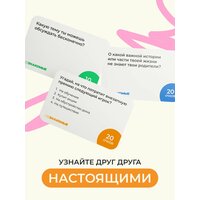 Игровые карточки забирайте себе — количество очков на них будет учитываться в конце игры. Карты из разных колод имеют разную ценность в очках. Карточки вовлечения нужны для дополнительного взаимодействия в процессе игры. Используйте их в любое время и для любого игрока, не дожидаясь своего хода: «Поддержка» — если для ответа на вопрос требовалась смелость, и вы хотите поблагодарить игрока; «Вопрос» — чтобы уточнить что-то или попросить игрока больше раскрыться; «Дай пять» — если у вас было так же; «А как у тебя?» — чтобы попросить другого игрока тоже ответить на вопрос или выполнить задание из карточки.