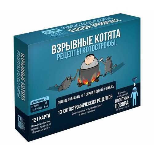 Приготовьтесь к захватывающей, интересной стратегической игре, где русская рулетка обретает новый, пушистый облик! Ваши любимые взрывные котята возвращаются с набором, который включает 121 карту из различных версий игры и дополнений, включая эксклюзивное дополнение, ранее не издававшееся на русском языке.