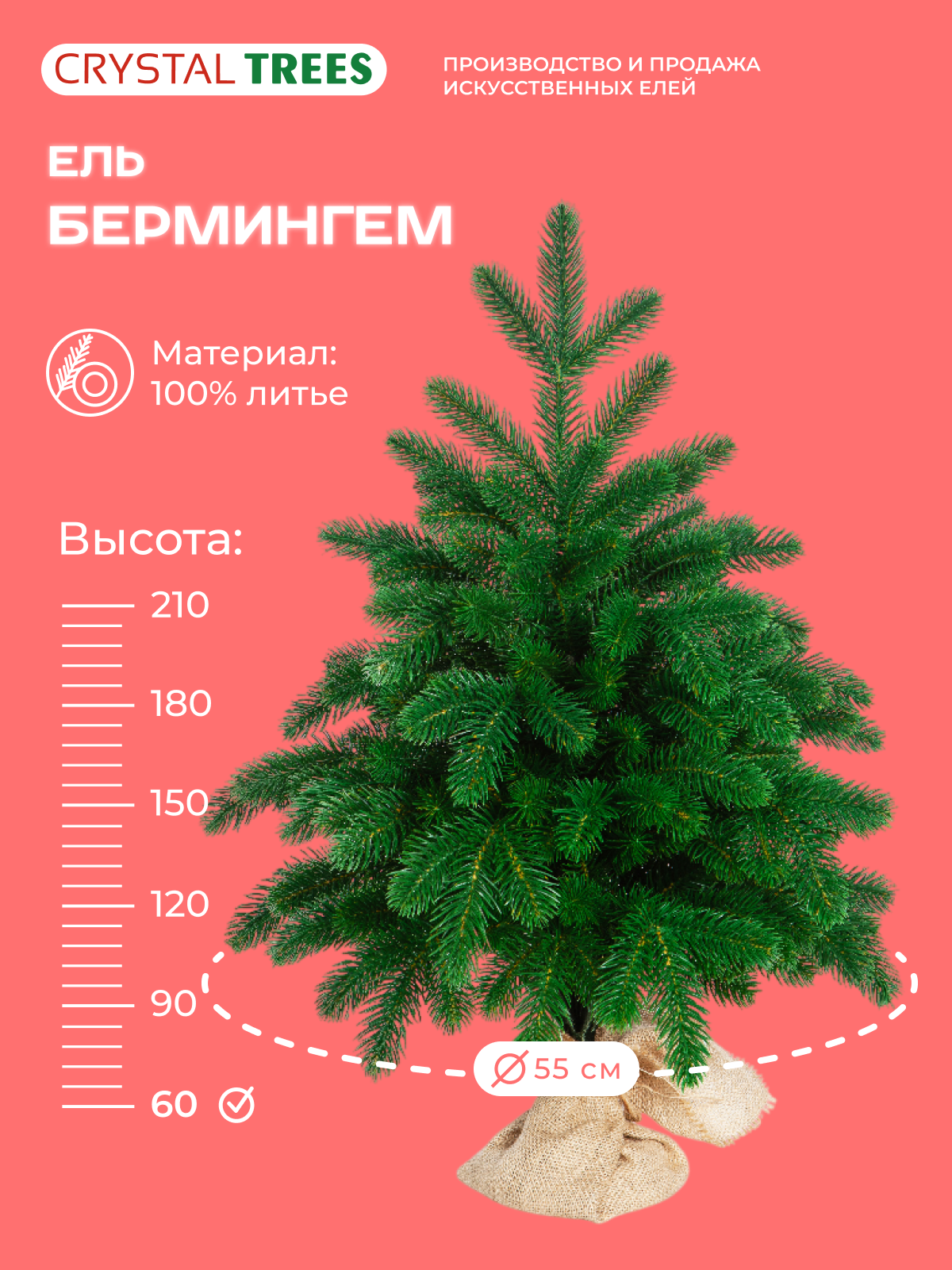 Широкий диаметр и пышные формы делают ель "бермингем" непревзойденной. Благодаря литым веткам, она долго сохраняет форму и быстро собирается, позволяя вам с легкостью распушить её иголочки.