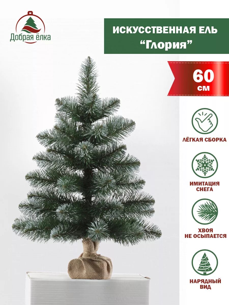 Настольная искусственная новогодняя елка «Глория» 60 см белые кончики, Добрая елка, зеленая, пушистая.: сравнение цен, характеристики, фото, актуальное наличие и цены.