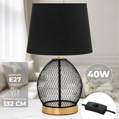 | Дополнительная информация | Настольная лампа 25х25х43 см, с черным абажуром - диаметр нижней части 25х25 см, диаметр верхней части 20х20 см, высота - 18 см, основание - металл - 14х14 см, рекомендуемая максимальная мощность лампочки 40 W, длина провода - 132 см |