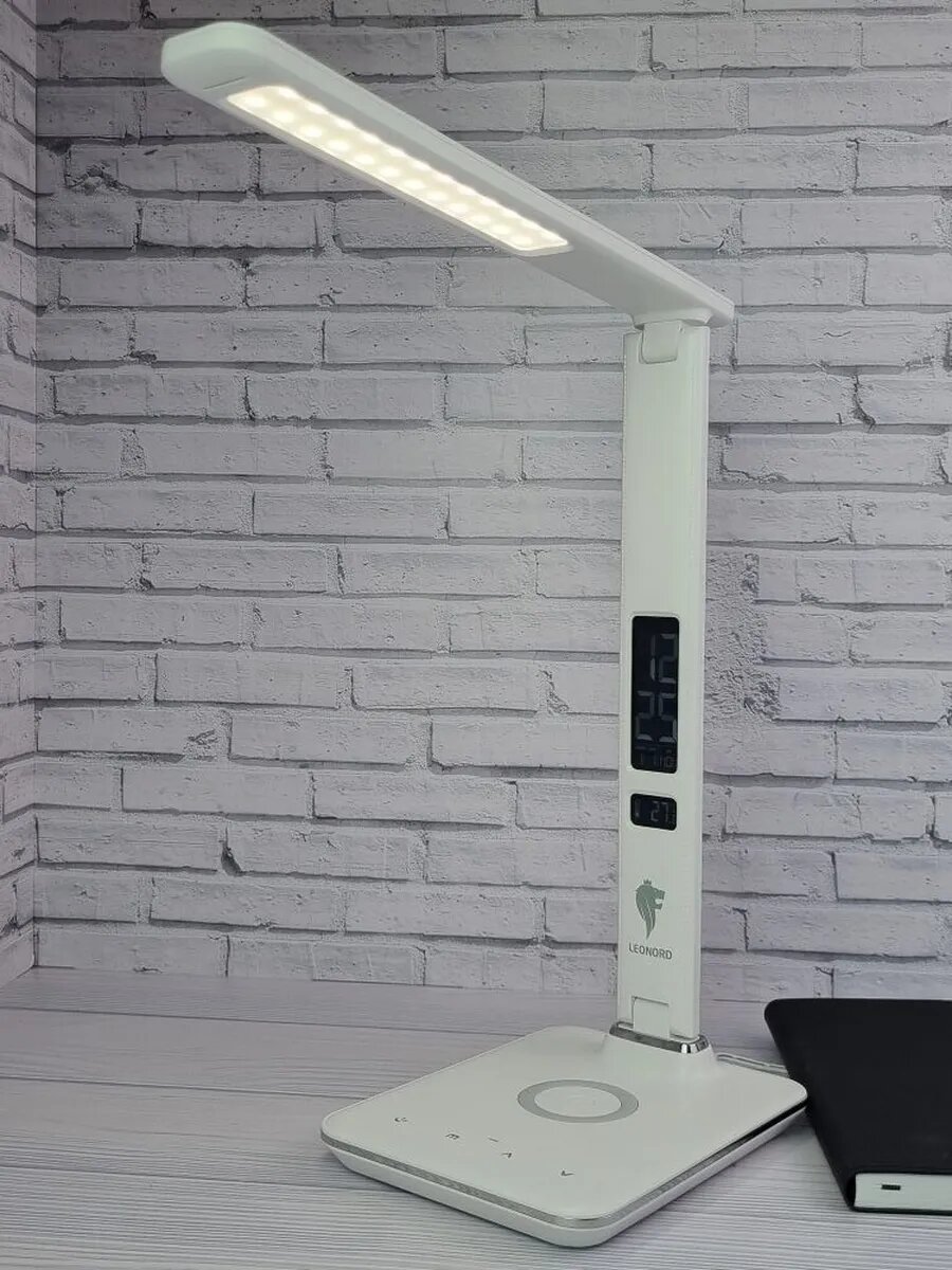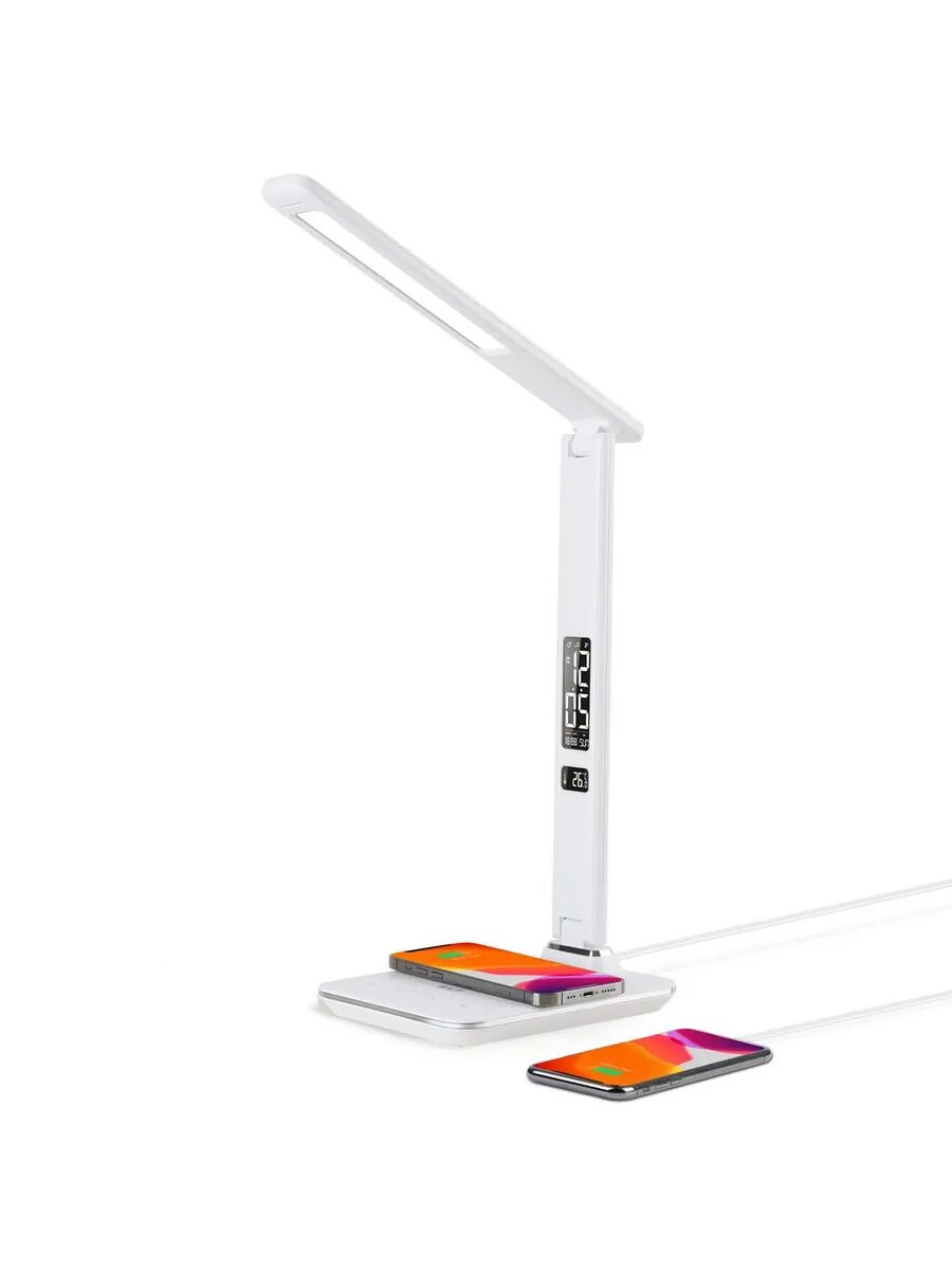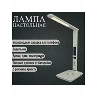 Лампа настольная с беспроводной зарядкой для телефона, будильником, датой и временем