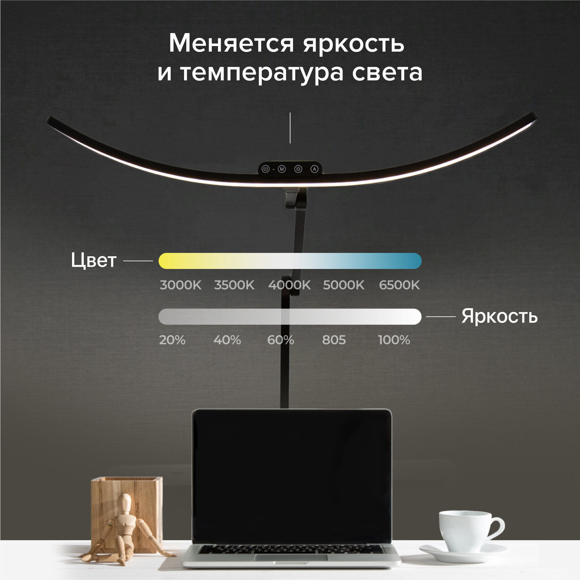 2. Офисная, детская, школьная функциональность: Адаптируйте свет под свои потребности благодаря регулировке яркости и цветовой температуры. Идеально подходит для рабочего стола, учебного стола или игрового пространства.