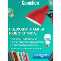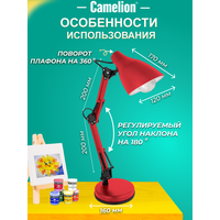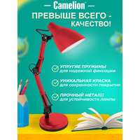 Настольная лампа Camelion KD-331 C04 красный, 230В, 40Вт, E27 - незаменимый атрибут, который поможет создать идеальное рабочее место, посредством хорошего освещения, для выполнения письменной работы, работы за компьютером, во время учёбы, занятий любимым хобби. А для того, чтобы помочь Вам максимально просто организовать комфортное, достаточно освещенное рабочее место для различных задач, мы представляем Вашему вниманию универсальную классическую настольную лампу на подставке хорошего качества от нашего производителя. Наша лампа выполнена в стиле лофт и идеально подходит для абсолютно любого интерьера. Такая стильная современная настольная лампа органично впишется в дизайн Вашего рабочего стола и выгодно добавит ему необходимого света. А Вас обеспечит необходимым комфортом. Металлическая настольная лампа имеет цоколь Е27 и надёжную конструкцию. Ко всему прочему, лампа эргономична и оснащена вращающимися поворотными механизмами. За счёт чего, Вы всегда сможете настроить лампу под себя, создав максимально комфортное освещение для вашего зрения.