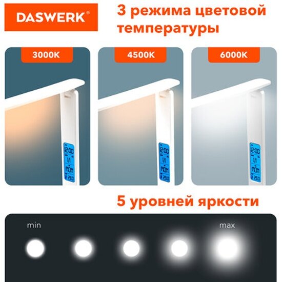 Настольная лампа Daswerk светильник с дисплеем и беспроводной зарядкой «7 в 1», LED, 10 Вт, белый,: сравнение цен, характеристики, фото, актуальное наличие и цены.