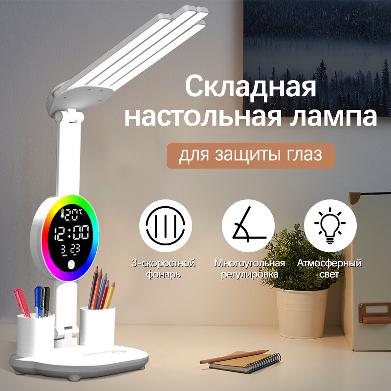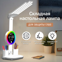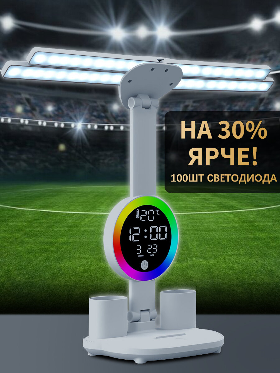 | Особенности | возможность подключения диммера, крепление в комплекте, лампы в комплекте, регулировка наклона и поворота плафона, регулировка по высоте, регулировка яркости, режим ночника, с календарем, с термометром, с часами, складная конструкция |