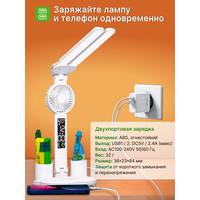 | Дополнительная информация | свет без мерцания и защитой глаз (технология Eye protect), двойной источник света, встроенный аккумулятор 2000мАч, 3 температуры света 3000К, 4500К и 6000К; сенсорная регулировка уровня освещенности от 10 до 100%; складная конструкция лампы, |