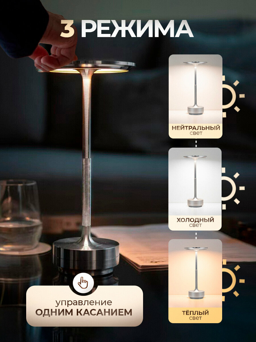Купить Настольная лампа интерьерная светодиодная беспроводная Bliss Silver серебристый светильник с доставкой по всей России.