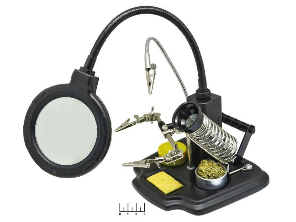 Настольная лампа-лупа ZD-10Y 16LED на гибком штативе 3х с паяльными аксессуарами, зажим третья рука, подставка для паяльника: сравнение цен, характеристики, фото, актуальное наличие и цены.