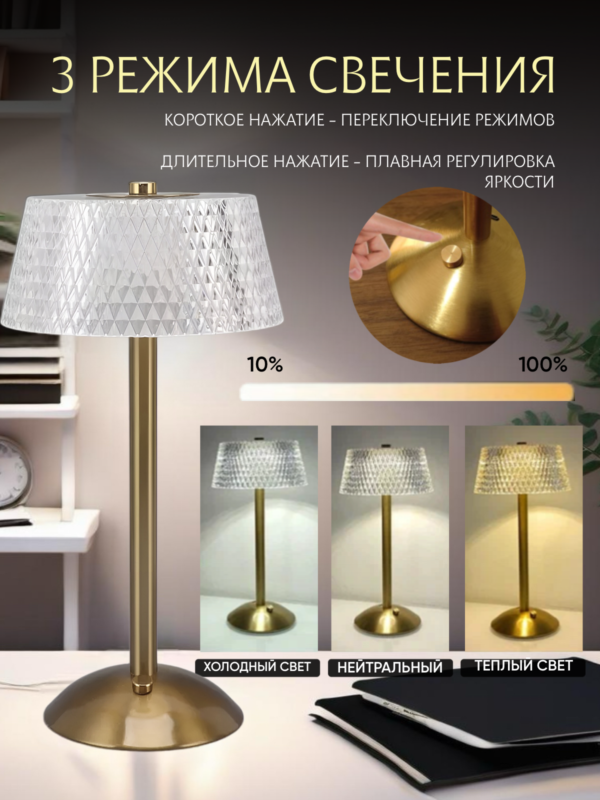 | Особенности | прозрачный плафон, регулировка яркости, режим ночника, с абажуром |
