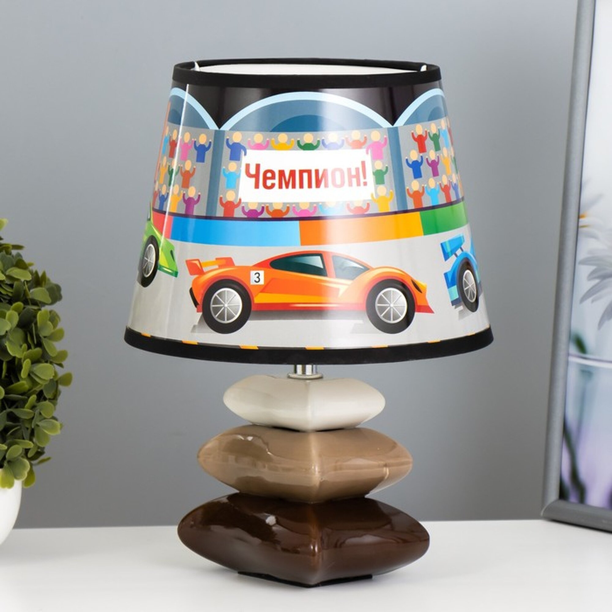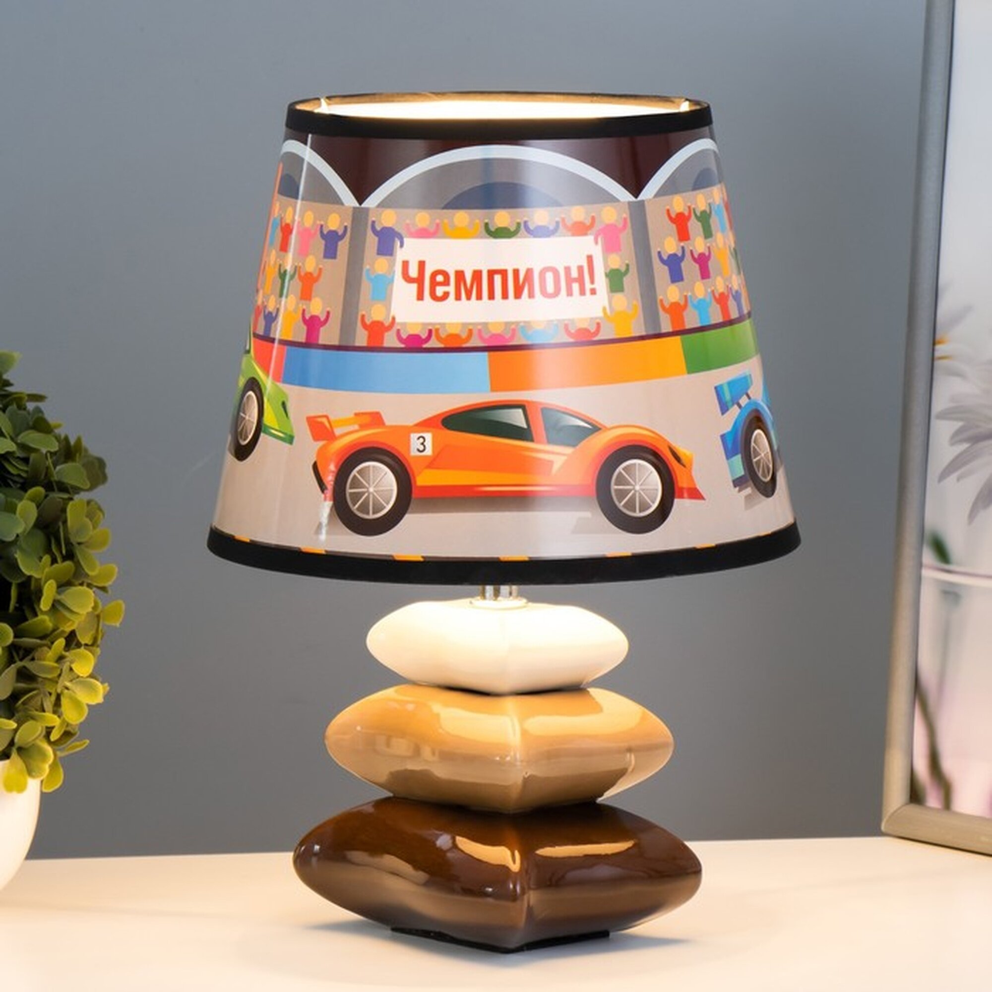 Настольная лампа с абажуром RISALUX «Гонки», Е14, 15 Вт, бело-чёрный, 20×20×28 см: сравнение цен, характеристики, фото, актуальное наличие и цены.