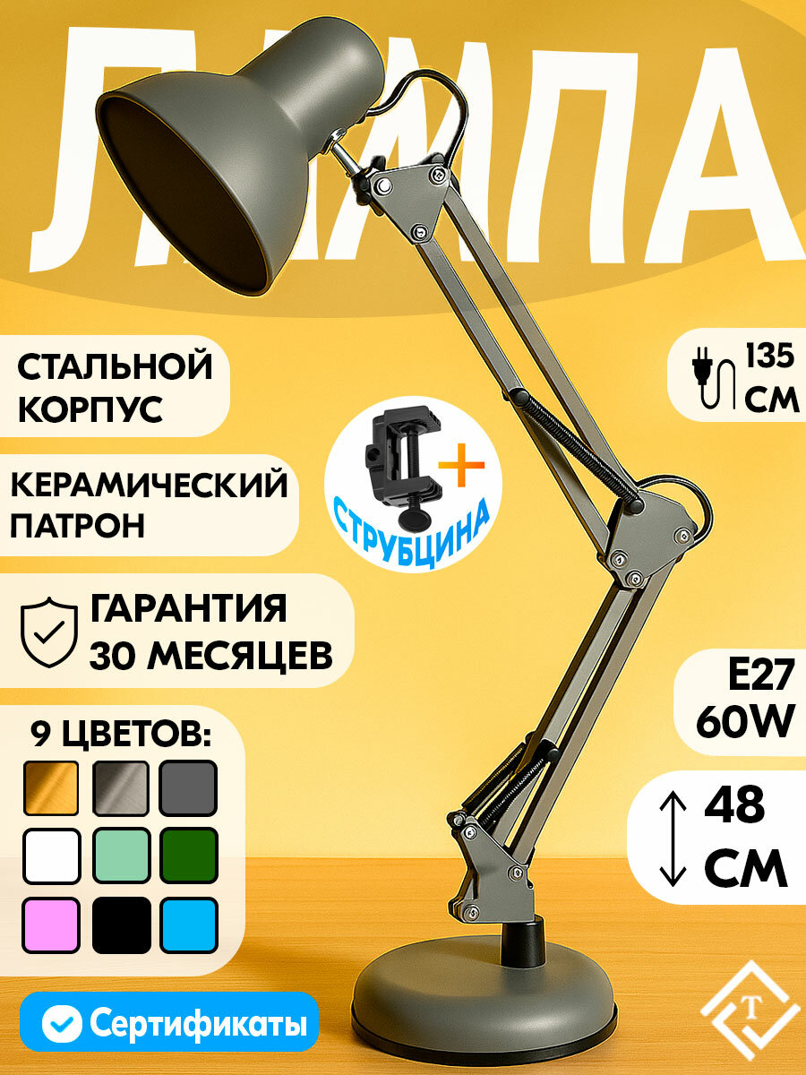 Настольная лампа светильник МТ2001 Антрацит E27 220В Ultra LIGHT серый: сравнение цен, характеристики, фото, актуальное наличие и цены.