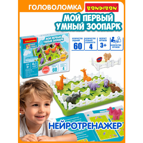 Порадуйте ребенка логической настольной игрой МОЙ первый умный зоопарк от Bondibon. Замечательная красочная головоломка серии БондиЛогика с забавными фигурками животных надолго увлечет маленьких мальчиков и девочек.