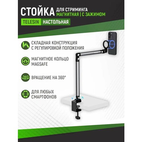 Купить Настольная магнитная стойка магсэйф для телефона Telesin, с зажимом, держатель для смартфона, P3-DS-02 с доставкой по всей России. Настольная магнитная стойка магсэйф для телефона Telesin, с зажимом, держатель для смартфона, P3-DS-02: сравнение цен, характеристики, фото, актуальное наличие и цены.
