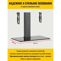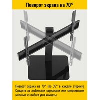 Настольная подставка iTECHmount KFS-641 с наклонно-поворотным кронштейном для телевизора, станет отличным решением, при необходимости установить телевизор на горизонтальную поверхность. Стильный дизайн подставки из черного закаленного стекла, возможность регулировать высоту расположения телевизора на уровне 360 / 405 / 455 / 505 / 550 мм от поверхности стола, являются основными преимуществами и отличной альтернативой стандартным подставкам, идущим в комплекте с телевизорами. Надежная конструкция из высококачественной стали, закаленное стекло толщиной 8 мм, позволит надежно установить Ваш телевизор диагональю от 37" до 70", весом не более 40 кг. Данная модель кронштейна позволит Вам так же регулировать угол поворота телевизора в диапазоне до 35° вправо и до 35° влево.