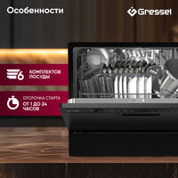 Купить Настольная посудомоечная машина Gressel UPB550, 5 программ, 6 комплектов, 55см, черная с доставкой по всей России.
