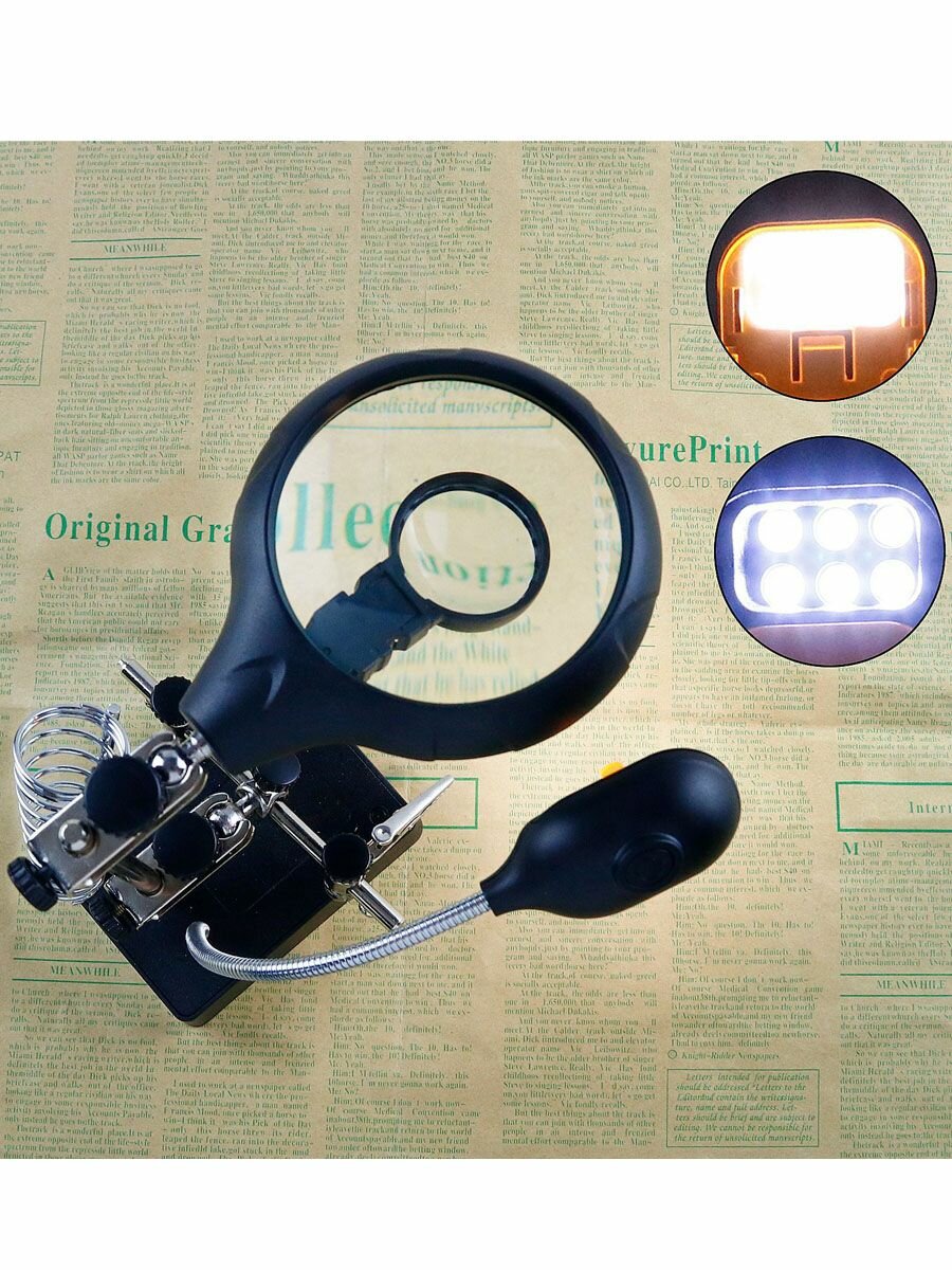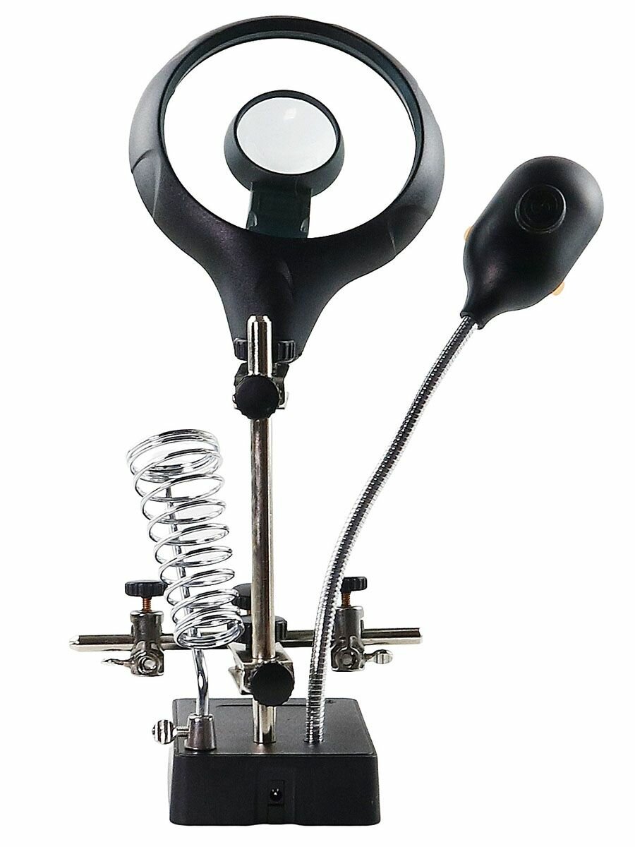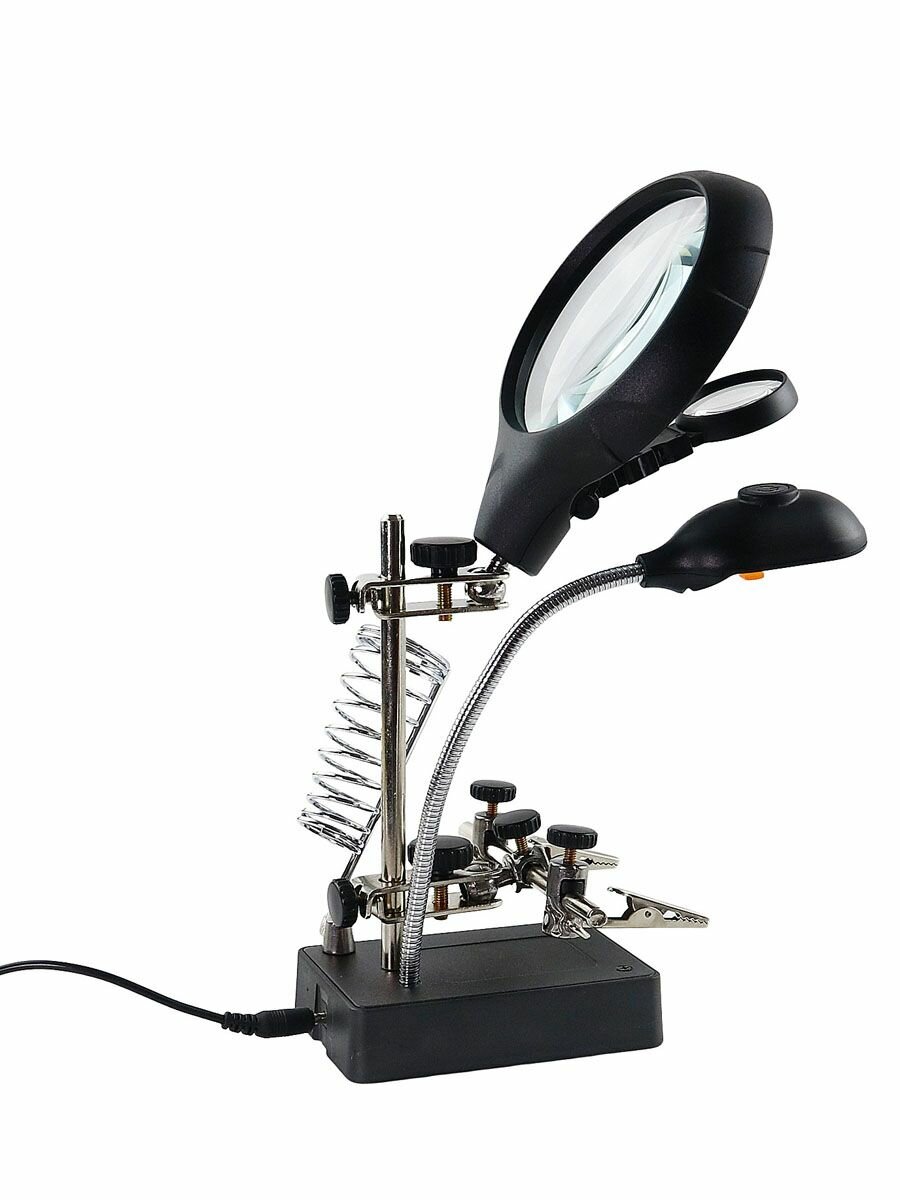 Настольная сварочная монтажная лупа MyLatso 3/5/8/11x 90/34мм, третья рука на штативе с держателем и подсветкой (6 LED): сравнение цен, характеристики, фото, актуальное наличие и цены.