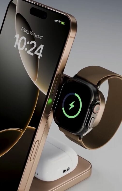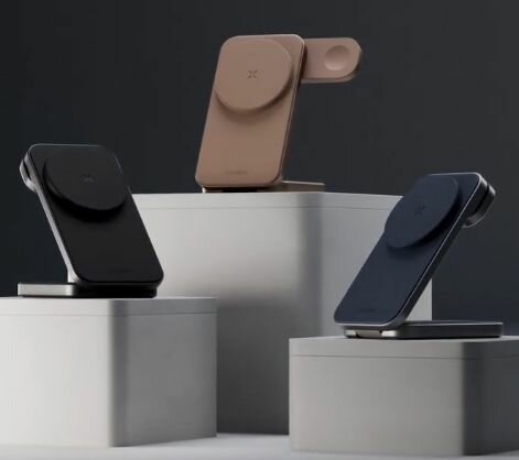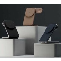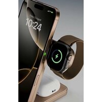 Ультрапортативная складная беспроводная зарядная станция 3-в-1 с сертификатом Qi2 сочетает в себе мощность тройной беспроводной зарядки и удобство магнитного крепления без использования рук. Предназначена для iPhone 12 и более поздних моделей. Подставка также оснащена выдвижным зарядным устройством для Apple Watch.