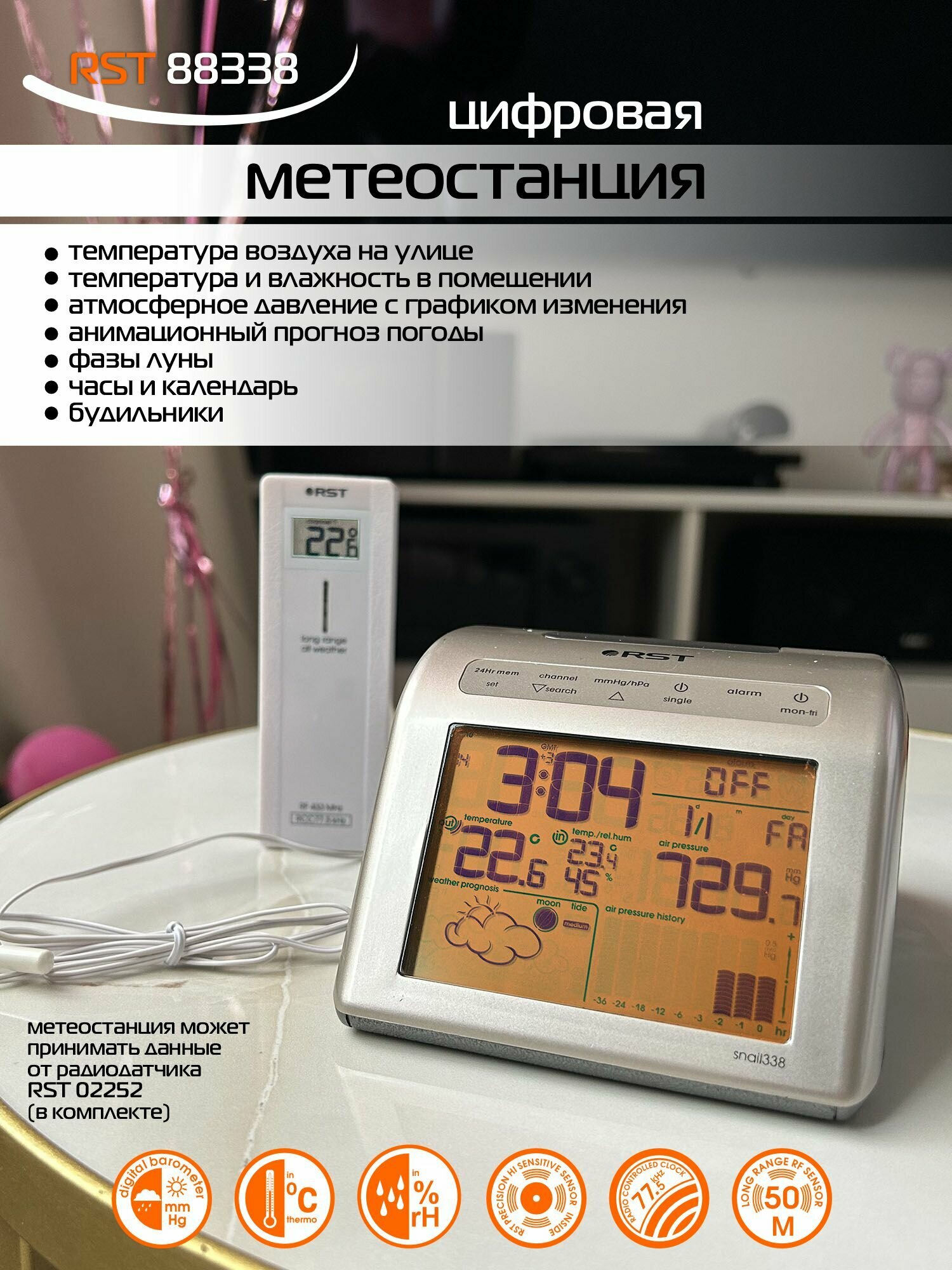 Купить Настольные часы метеостанция RST Snail 338 беспроводным выносным датчиком с доставкой по всей России. Настольные часы метеостанция RST Snail 338 беспроводным выносным датчиком: сравнение цен, характеристики, фото, актуальное наличие и цены.