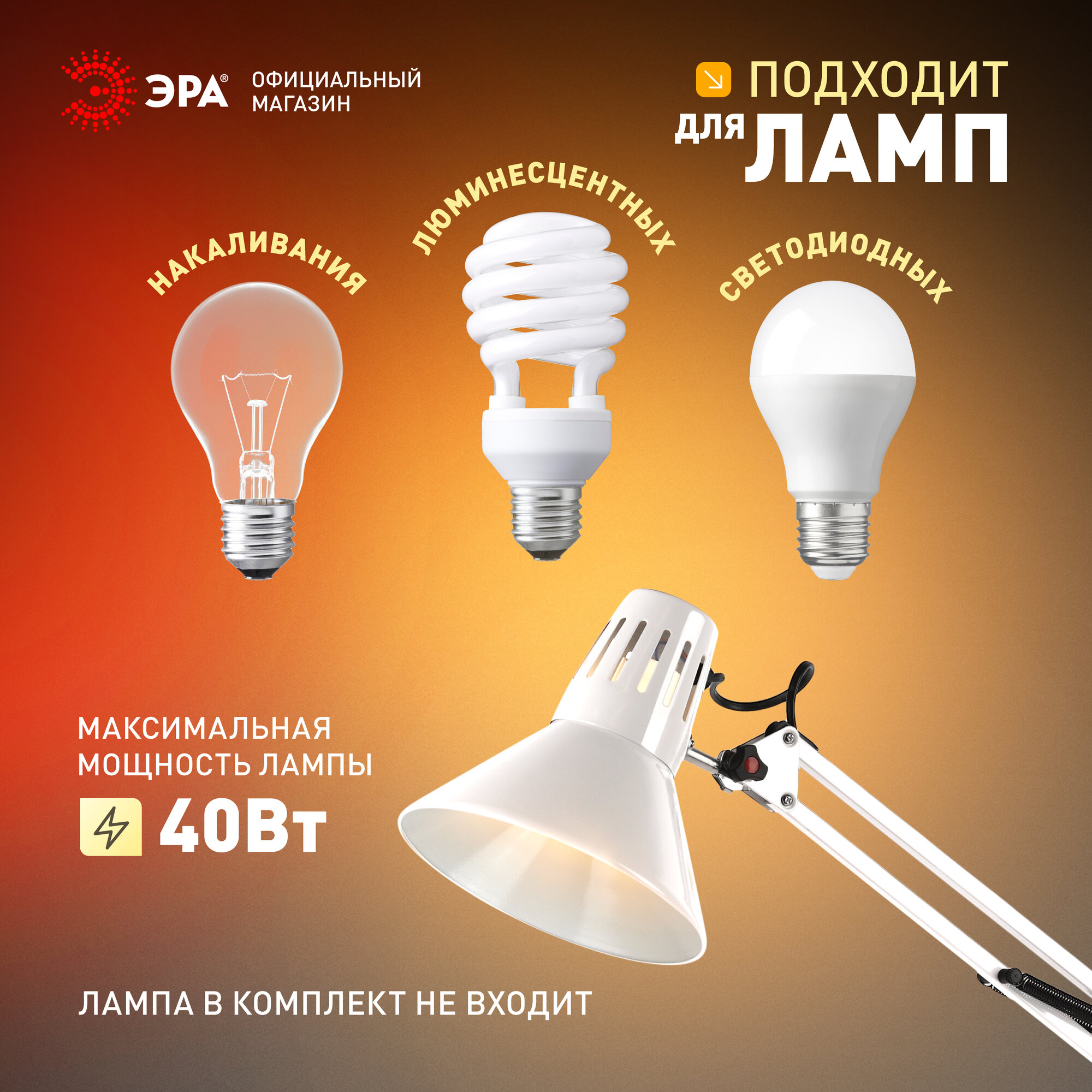 [Настольные светильники] ЭРА C0041455 Настольный светильник N-121-E27-40W-W белый {крепление на струбцине}