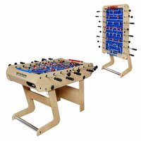 • Корпус игрового стола выполнен из материалов повышенной прочности и легко выдерживает высокие нагрузки даже при активной игре • Особая конструкция игрового поля препятствует возникновению «мертвых» зон в углах игрового пространства, а значит, мяч всегда будет находиться в игре • Корпус и игровое поле покрыты специальным термо материалом, который обладает высокой устойчивостью к износу и стиранию, а значит футбол будет служить намного дольше, сохраняя свой яркий облик • Длина металлических штанг рассчитана специально, чтобы избежать защемления пальцев при любом ритме игры • Фирменная система защиты от ударов Player Safety убережет от получения травм, благодаря специально разработанным накладкам на штанги • Рифленые рукоятки из плотного материала обеспечивают надежный хват, необходимый во время динамичных партий • Фигурки игроков выполнены из ударопрочного полимера и способны выдерживать сильные нагрузки • Благодаря компактному размеру и современному дизайну, настольный футбол отлично впишется в интерьер любых комнат • Уникальная система складывания позволяет хранить игровой стол в вертикальном положении и экономить пространство в помещении • Надежная упаковка позволяет с легкостью транспортировать игровой стол