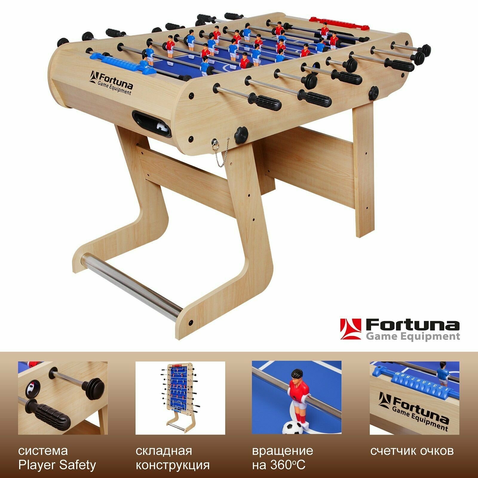 Футбол Fortuna Azteka FDL-420 имеет современный дизайн, складной корпус повышенной прочности, металлические штанги и игроков, выполненных из износостойкого полимера. Детский настольный футбол Fortuna разработан для использования в условиях комнатной температуры и влажности.