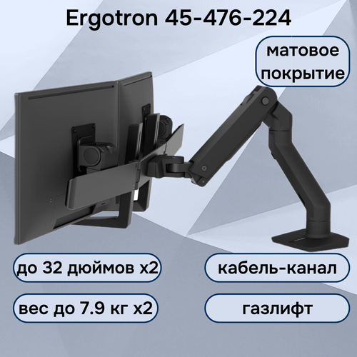 Настольный кронштейн для двух мониторов Ergotron 45-476-224 HX Desk Mount Dual Monitor Arm, до 32″ до 7.9 кг, черный матовый: сравнение цен, характеристики, фото, актуальное наличие и цены.
