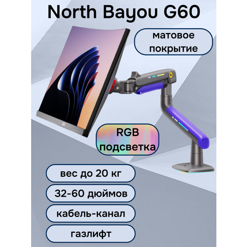 Настольный игровой кронштейн для монитора NB North Bayou G60, 32-60″ до 20 кг, с RGB-подсветкой, матовый черный: сравнение цен, характеристики, фото, актуальное наличие и цены.
