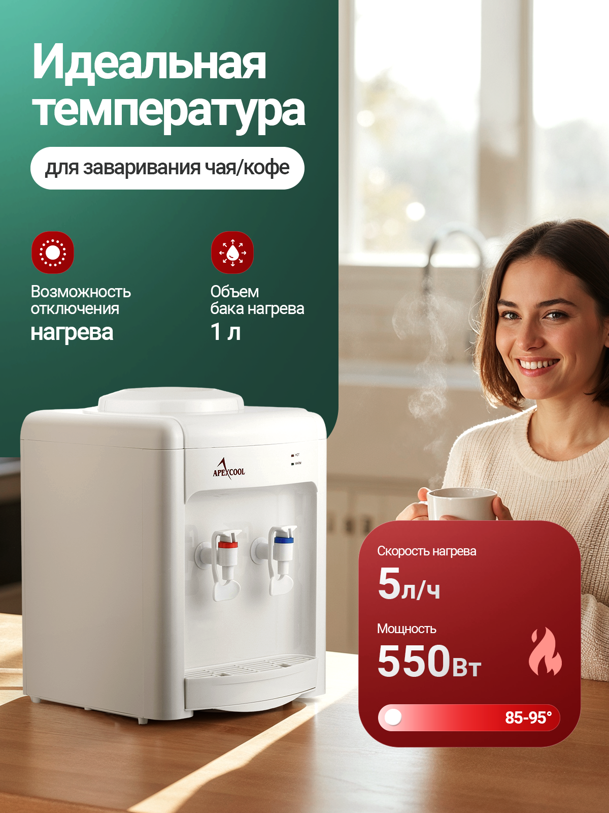 Купить Настольный кулер для воды APEXCOOL 36TK белый нагрев без охлаждения с доставкой по всей России. Настольный кулер для воды APEXCOOL 36TK белый нагрев без охлаждения: сравнение цен, характеристики, фото, актуальное наличие и цены.