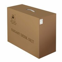 Состоит из 7 предметов: - жесткий коврик для письма с деревянной рамкой, покрытие из натуральной кожи; - лоток для бумаг; - подставка для бумажного блока, размером 15,2x16,4x6,9 см; - 2 ручки в комплекте; - подставка с настольными часами; - подставка для визиток; - подставка для перекидного календаря; Фирменная подарочная коробка станет приятным дополнением к основному презенту.