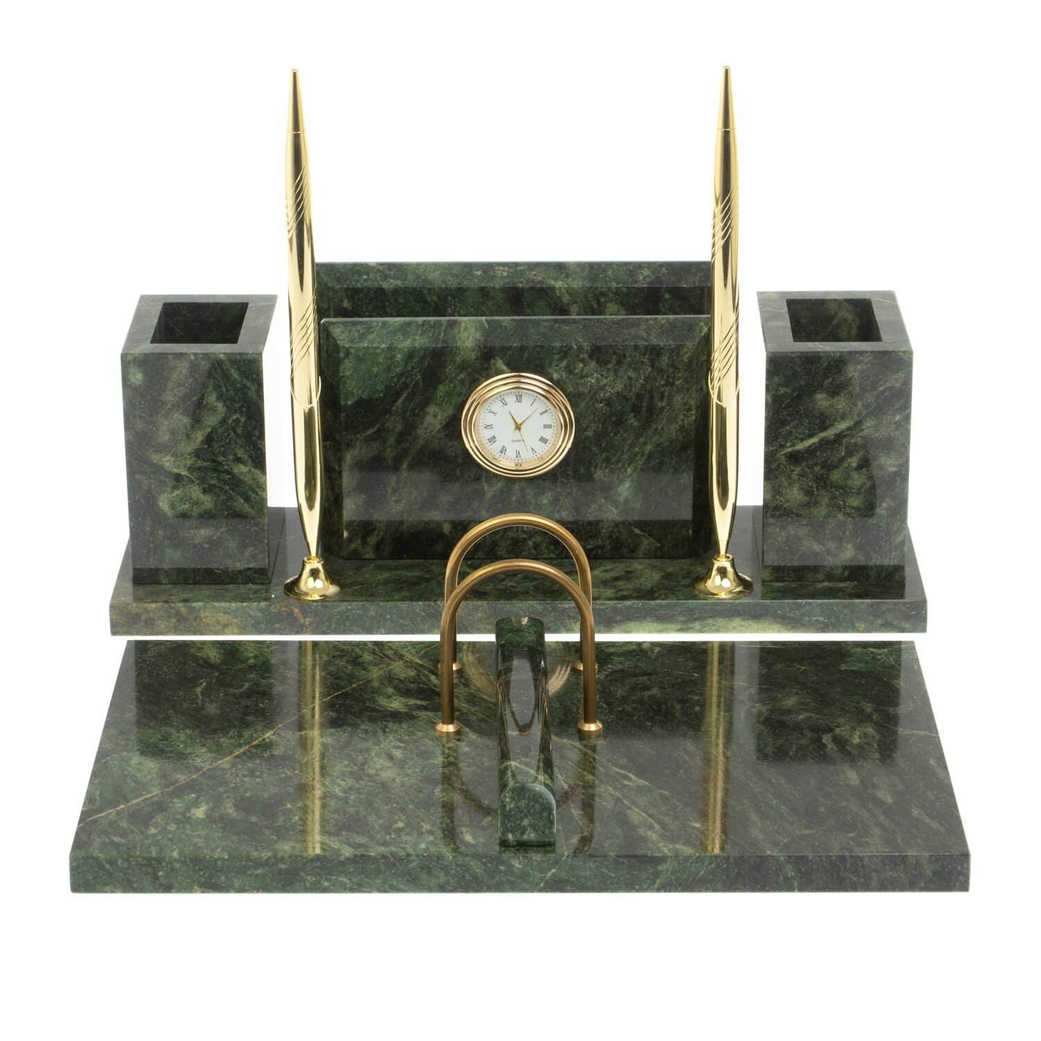 Письменные наборы из змеевика имеют стильный дизайн и вдобавок они сделаны вручную из натуральных и экологичных материалов.